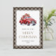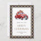 Xadrez de búfalo personalizada Cartão de Natal Merry com um caminhão vermelho clássico. Personalize facilmente este cartão de férias de caminhão vermelho com a sua família.