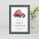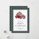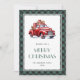 Xadrez verde de búfalo Merry cartão de Natal com um clássico caminhão vermelho. Personalize facilmente este cartão de feriado com aquarela com o seu nome de família e o ano.