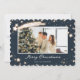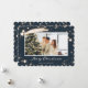 Elegante foto azul Feliz Cartão de Natal com estrelas sobre um fundo azul escuro enfeitado com neve caindo. Personalize facilmente este cartão de feriado estrelado com sua foto, seu nome de família e seu texto.