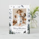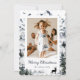 Belíssima foto de aquarela Feliz cartão de Natal com uma cena de inverno com telhados de montanha, florestas de inverno e cervos. Personalize facilmente este cartão de feriado com a sua fotografia, nome da família e texto.