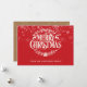 Cartão de Natal clássico com flocos de neve para festa de escritório, apresentando flocos de neve caindo em um fundo vermelho festivo com uma saudação de Natal em uma tipografia elegante. Personalize adicionando o nome da sua empresa. Você pode adicionar uma mensagem sazonal no verso ou, se preferir, deixá-lo em branco, basta excluir o texto. Criado por Thisisnotme©