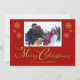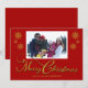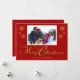 Cartão de Natal vermelho com design de flocos de neve e caligrafia "Feliz Natal" para foto de família. Você pode personalizar este cartão para adicionar o nome da sua família e foto para substituir a foto de amostra. Este cartão é projetado para que você também possa alterar a cor do fundo vermelho, bem como a cor do gráfico "Feliz Natal" e dos flocos de neve também, se desejar.