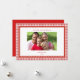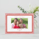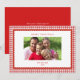 Cartão de Natal com foto da família com borda xadrez vermelha e branca em estilo retrô simples e elegante