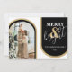 Esses cartões de natal minimalistas retrô são perfeitos para enviar votos de Natal. Os cartões apresentam um tema retrô com tons de preto e dourado. Um modelo de saudação de Natal moderno, sua foto emoldurada com arcos em tons modernos de preto e dourado. Os estilos de fonte e cor podem ser alterados clicando no link personalizar ainda mais após a personalização.