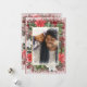 Uma moldura muito fofa de folhagens e poinsettia ao redor de sua foto favorita. Fundo vermelho de Natal. Adicionamos neve falsa ao redor da foto e uma moldura temática de Natal. Adicione sua foto favorita. Adicione seu sentimento pessoal e nomes preferidos e voilà o cartão de felicitações perfeito para todos os seus familiares e amigos.