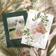 Elegante cartão de Natal para fotos verticais apresenta sua foto rodeada por uma borda geométrica de folhagem botânica verde exuberante e pequenas bagas de azevinho em aquarela vermelha. "O céu e a natureza cantam" aparece no canto superior esquerdo em letras cinzas, com o nome da sua família no canto inferior direito. Personalize o verso com duas fotos adicionais e uma mensagem pessoal.
