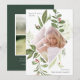 Elegante cartão de foto de Natal para fotos verticais apresenta sua foto rodeada por uma borda geométrica de folhagem botânica verde exuberante e pequenas bagas vermelhas de azevinho em aquarela. "O céu e a natureza cantam" aparece no canto superior esquerdo em letras cinzas, com o nome da sua família no canto inferior direito. Personalize o verso com duas fotos adicionais e uma mensagem pessoal.