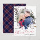 Envie seus cumprimentos de Natal com um estilo clássico de inverno com este cartão de foto de Natal exclusivo, apresentando fundos e acessórios xadrez vermelhos e azuis festivos. Personalize com sua própria foto e assine com seu nome para torná-lo totalmente personalizável neste design elegante