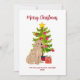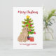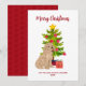 Cartão de Natal de Goldendoodle bonito com árvore de Natal e presente. Personalize com seu texto.