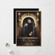 Cartão de Natal Feliz Escuro com um lindo portão do cemitério de ouro com lanternas e detalhes do ornamentado.