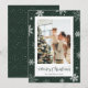 Cartão de Natal verde com flocos de neve com flocos de neve em fundo verde-nevado. Personalize facilmente este cartão fotográfico de Natal com a sua fotografia e o seu nome familiar.