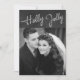 Holly jolly escreveu em brilhos, acentua sua foto neste cartão de feriado.