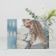 Um lindo padrão iridescente de pinceladas sobre o sotaque azul de lavagem a cores aquáticas faz o cartão de Natal perfeito. Personalize facilmente a foto, o nome e o ano.