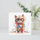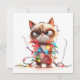 Envie um sorriso nesta temporada com este gato mal-humorado marrom e branco hilariamente envolto em luzes brilhantes. Um cartão divertido para amigos e familiares.