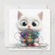 Traga a magia do Natal à vida com este gatinho branco de olhos arregalados envolto em luzes de Natal cintilantes. Uma maneira encantadora de compartilhar alegria e calor com os entes queridos nesta temporada.