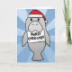Nosso cartão de Natal super bonito de kawaii Manatee é perfeito para as férias! A grande vaca marinha está vestindo um boné de Papais noeis vermelhos, e amarrado em sua boca é um sinal que diz Feliz Natal. A mensagem dentro diz: "Desejando-lhe uma temporada de férias pacífica!" Um cartão super fofo de Manatee! Envie para aquele amante de os animais que adora mamíferos aquáticos, ou para todos os seus amigos para compartilhar o amor. Fantástico para biólogos marinhos, zootécnicos, e muito mais.