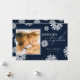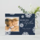 Use nossos cartões de Natal com flocos de neve juntos para desejar a seus amigos e família um Feliz Natal. Design apresenta um fundo azul-marinho de tendência com uma fotografia da sua escolha, flocos de neve caindo e um modelo elegante.