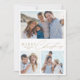 O moderno cartão de Natal minimalista apresenta um elegante roteiro de tendências e tipografia em cores douradas, com três fotos personalizadas da família, cartões de saudação simples e únicos.