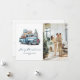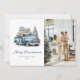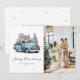 Foto de aquarela Cartão de Natal Merry com presentes de Natal de um caminhão azul e um desejo de feriado em uma letra elegante na frente e flocos de neve no verso. Personalize facilmente este cartão de feriado tradicional com sua foto e texto.