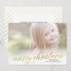 Este Cartões de foto de Natal elegante apresenta um script shimmering em folha falsa, com um backer e espaço riscados para uma breve mensagem de feriado. Carregue a sua própria fotografia e personalize as informações para incluir a saudação de Natal da sua família.