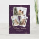 Belo cartão de Natal roxo, com uma colagem fotográfica contra um fundo roxo adornado com flocos de neve e neve caindo. Mais opções de cores disponíveis.