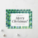 Festividades Cartão de Natal Merry para Xadrez de Aquarela Verd