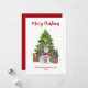 Cartão de Natal de Schnauzer de Miniatura Bonita, com árvore de Natal e presentes. Personalize com seu próprio texto.