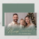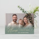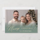 Envie um toque de elegância nesta temporada com este cartão de feriado minimalista, apresentando um sutil gradiente verde ao longo do fundo e "Feliz Natal" na frente. Adicione sua própria foto para um cartões de natal personalizado e na moda. Perfeito por compartilhar uma mensagem calorosa e elegante com os entes queridos!