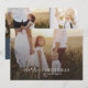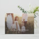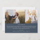 Este cartão de Natal com sobreposição de foto azul navy moderno chic é o cumprimento de férias elegante perfeito. Este design simples boho apresenta caligrafia clássica sofisticada em azul navy escuro rústico e branco. Personalize a frente do cartão com uma foto, o nome da sua família e o ano. Inclua 2 fotos adicionais e um ano opcional em revisão ou boletim informativo da família no verso do cartão.