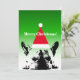 Esta design apresenta o Natal de um buldogue francês, floco de neve no chão e neve desfocada em fundo vermelho e verde.
