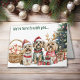 Três caninos adoráveis de Lhasa Apso vestem seu traje de Férias na frente deste cartão de Natal. Dois deles vestem chapéus vermelhos e brancos de Papai Noel, e um veste chifres. O texto acima diz "Estamos aqui para desejar...", e o sentimento é dentro. O texto é personalizável, então você pode fazê-lo dizer o que quiser. Bonita! Veja mais imagens e produtos para cães na Dog Village.