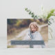 Cartões de foto de Natal simples e modernos apresentam sua foto horizontal ou orientada a paisagem favorita em cheio sangrado, com uma camada azul enfumaçado com seu cartões de natal, nome da família e o ano.