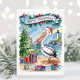 Cartão de Natal pelicano de cor aquosa. Personalize com seu próprio texto de saudação.