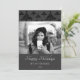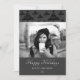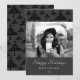 Cartão de foto de Natal elegante e moderno. O cartão é em tons de cinza e preto - com foto, desejo de Feliz Natal, sua nota pessoal e o número do ano em letra cursiva branca na moda. O padrão de árvore de Natal abstrata preta está na frente e no verso do cartão. Insira sua foto favorita no modelo - uma foto em preto e branco combina muito bem com o design. Personalize este cartão com seu nome e número do ano. É um ótimo design para qualquer pessoa, especialmente para solteiros.
