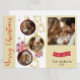 Comemore a época de férias com este elegante cartão de Natal personalizado com fotos da sua família em um design festivo. A seção superior mostra uma grande foto retangular, limitada por um fundo bege quente, combinada com um gráfico de fita vermelha que mostra a mensagem sentida "Com amor", seu nome de família e o ano "2024". O centro destaca três fotos circulares estilhaçadas como Enfeites de natal, conectadas por cordas de ouro imersas adornadas com flocos de neve delicados e sotaques espumantes. Ao redor dos embelezamentos vermelhos e dourados com flocos de neve melhora a alegre atmosfera de feriado. A parte inferior do cartão apresenta "Feliz Natal" em elegante cursivo vermelho contra uma faixa bege, criando um acabamento harmonioso e convidando. Perfeito por compartilhar suas lembranças queridas, este cartão é uma maneira séria de espalhar alegria e amor aos amigos e à família nesta temporada.