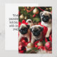 Cartão de Natal Plano 13 x 18 cm com adoráveis filhotes de pug