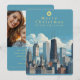 Adicione sua foto a este cartão especial de Feliz Natal. Cartão de Natal com a paisagem de Chicago. Ótimo para quem viaja ou mora em Chicago e quer enviar um cartão que mostre a cidade. Texto personalizado na frente e no verso. Adicione a foto desejada no verso junto com uma saudação pessoal. Use o modelo para criar seu próprio cartão de Natal com foto da paisagem de Chicago.