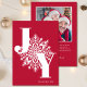 Celebrar a magia da estação com este elegante Cartões de foto de Natal com um ousado design de "JOY", acentuado por um belo e intrincado floco de neve. Definido em um fundo vermelho com uma fonte branca em negrito, este cartão combina a tradição do eterno com um toque do estilo contemporâneo. Personalize com sua foto de família e o nome de um cartões de natal sincero que seus entes queridos apreciarão. Perfeito para espalhar paz, amor e alegria nesta estação festiva.