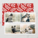 Este design festivo de Natal exibe quatro fotos com sua mensagem de Natal personalizada no centro. O verso é um padrão de folhas de Natal. A cor do fundo no verso pode ser alterada para qualquer cor que você escolher.