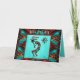 Personalize este cartão de Natal "Único" Sudoeste Kokopelli! Ele apresenta um Kokopelli do sudoeste tocando flauta e dançando sob o sol em um fundo turquesa, cercado por bordas turquesa, laranja e preto e as palavras edificantes..."Paz na Terra"!