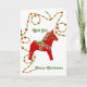 Cartão de Natal sueco é de um cavalo de madeira talhado e pintado por Julia Morrill