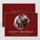 Este cartão de Natal vermelho e branco e arrojado apresenta uma foto redonda cercada por uma simples coroa branca desenhada pela mão. É combinado com o texto moderno. Digite seu nome de família na frente e seus primeiros nomes e ano sob a mensagem traseira.
