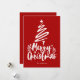 Feliz Natal na fonte decorativa com estilo de escrita com um esboço de uma árvore de Natal e estrela no design. Este cartão de Natal vermelho foi projetado para que você possa mudar a cor do plano de fundo, dos gráficos e também digitar o nome da sua família.
