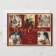 “Feliz Natal” em belo script dourado falso. Substitua as fotos com 5 das suas fotos favoritas. Fundo vermelho festivo. Altere os nomes e o ano, seu nome e que lindo cartão de Natal. Elegante. Tão simples, porém sofisticado.