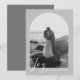 Este cartão de Natal moderno apresenta uma única foto vertical emoldurada dentro de um belo arco. Personalize este cartão simples com uma saudação personalizada, texto em itálico, nome, ano e foto vertical na frente. Escolha entre uma ampla variedade de tipos de papel. Selecione o cartão retangular de 5" x 7" ou adicione um recorte de borda com forma. Itens combinando estão disponíveis. Perfeito para um cartão de foto de Halloween, outono, Natal ou casamento para compartilhar com familiares e amigos.