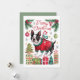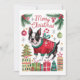 Um cartão de Natal de Boston Terrier Dog com um adorável "Boston Terrier Dog" vestindo um chapéu de Papai Noel cercado por decoração de Natal. Personalize com seu texto de saudação.