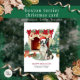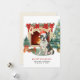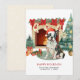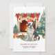 Um cartão de natal de Boston Terrier, com uma aquarela muito bonita, apresenta gráficos bonito de cor d'água de um Boston Terrier espiritado embrulhado em luzes de Natal perto de uma lareira e árvore de Natal. Personalize com a sua família e o nome do seu cão.
