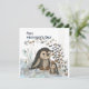 Personalize este adorável cartão quadrado com o início da primavera com um pinguim, um bebê pinguim e lindos flocos de neve. Atualize o texto ao seu gosto.