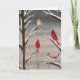 Esta placa de saudação 5x7 apresenta uma família de cardeais no inverno. O original, intitulado "Family Tree", foi pintado pelo artista David Pepper em janeiro de 2022.