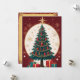 Este elegante cartão de saudação de Natal apresenta uma bela árvore de Natal ouro desenhada contra um fundo vermelho escuro. A árvore é enfeitada com enfeites delicados de ouro e revestida com uma estrela brilhante. A intrincada design inclui linhas de ouro e faíscas, que se criam a um sentimento festivo e luxuoso. Este cartão é perfeito para enviar desejos de férias aos amigos e à família, capturando a essência do Natal com o seu olhar sofisticado e festivo. A parte de trás da carta continua o tema festivo com um design de estilo vintage. Ele tem uma textura de papel antiga. O centro é o vazio, proporcionando amplo espaço para escrevendo uma mensagem pessoal, adicionando um toque de nostalgia e charme.